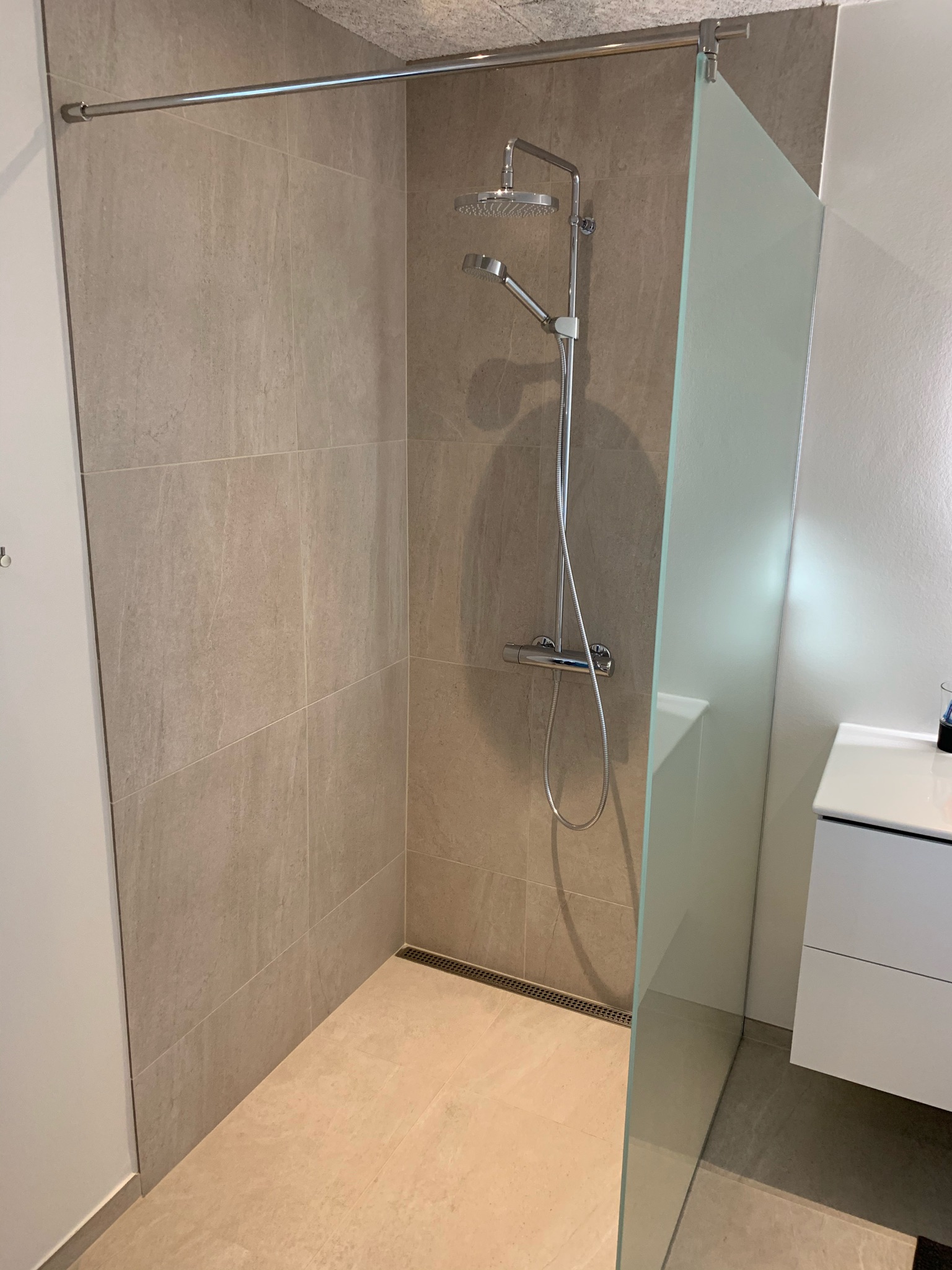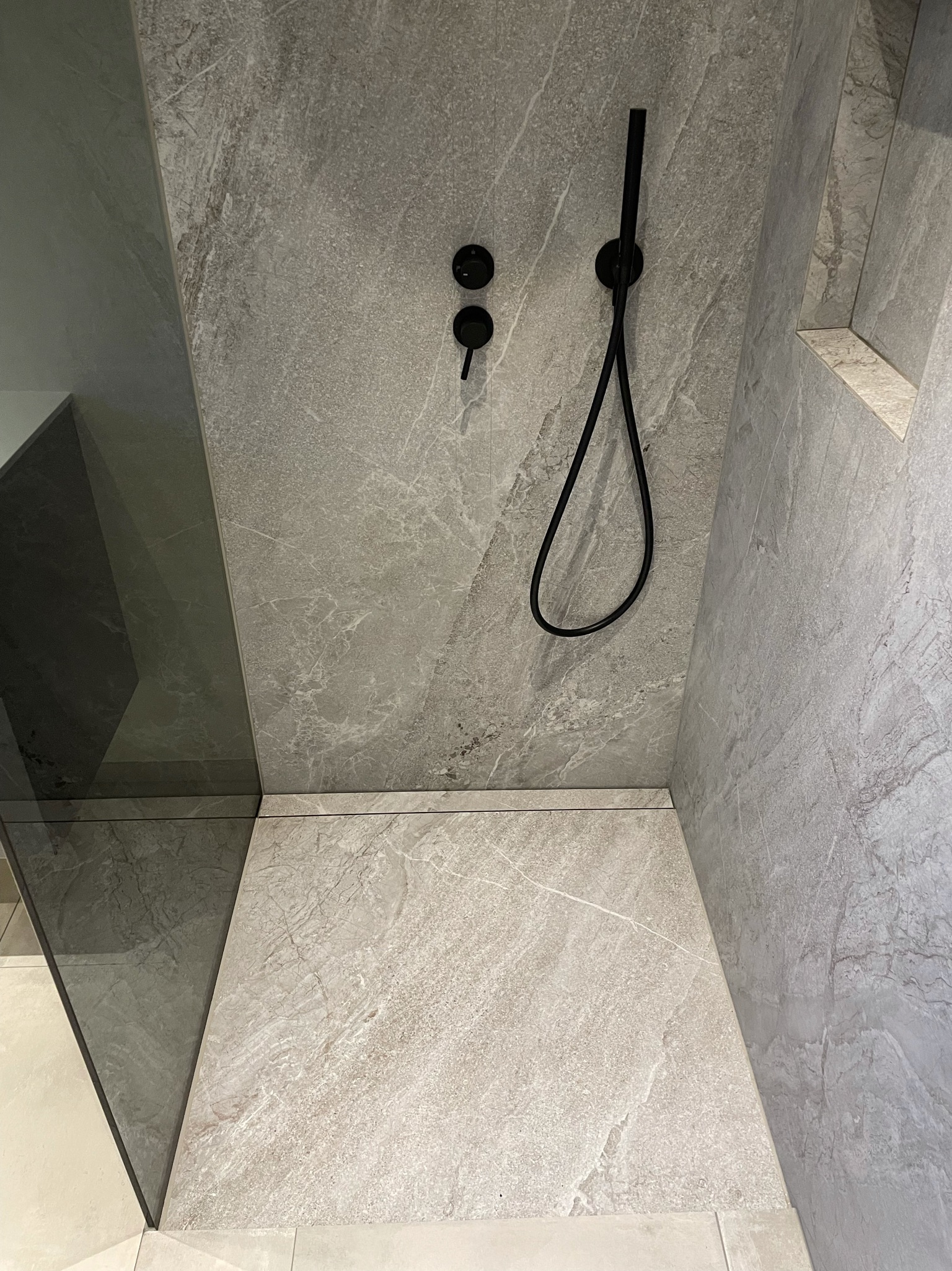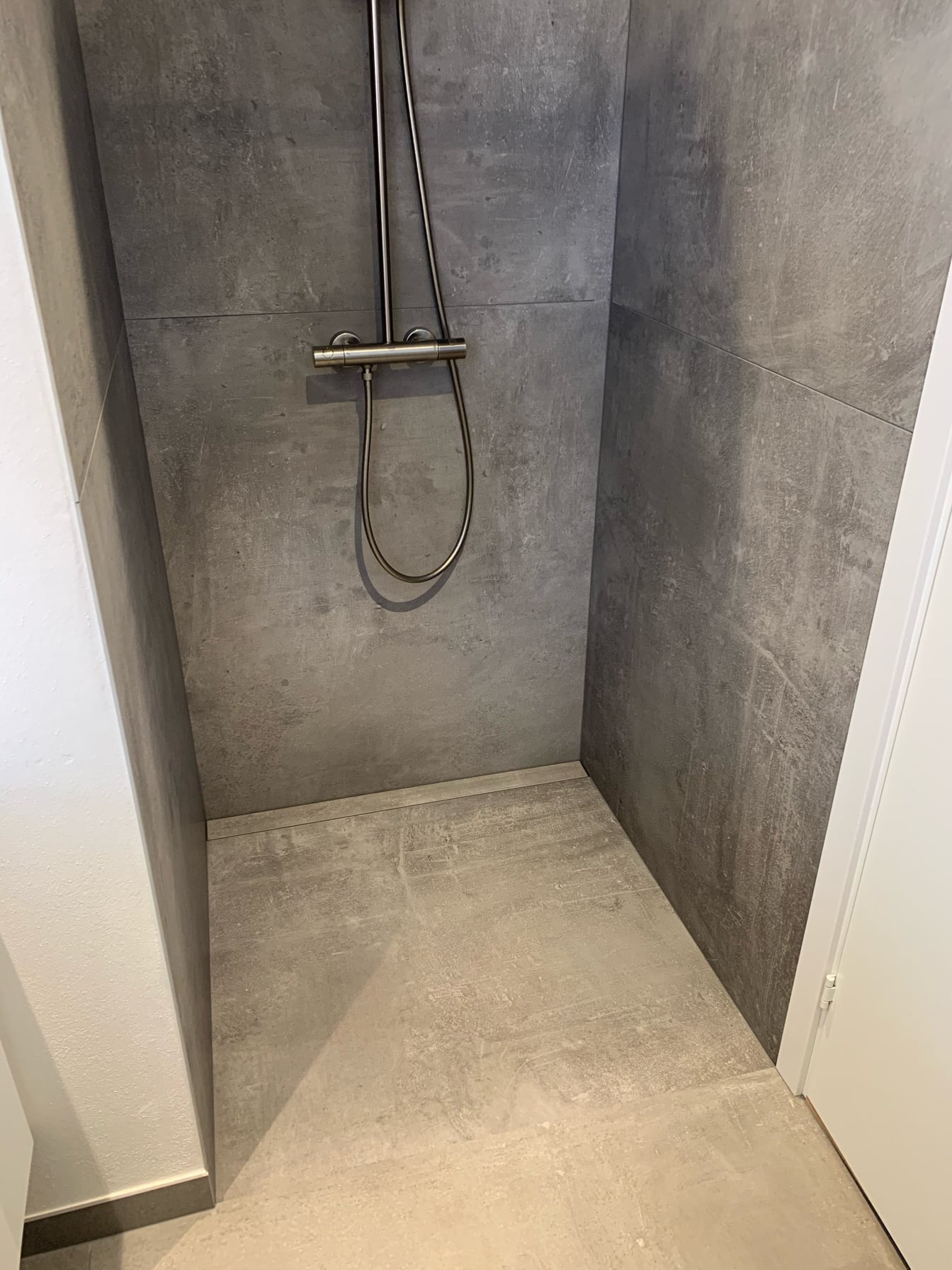 Unidrain er et linjeafløb, der går i ét med opbygningen af f.eks. brusenicher. Det giver en praktisk løsning, der samtidig skjuler en rent praktisk løsning, og  giver et roligt udtryk.