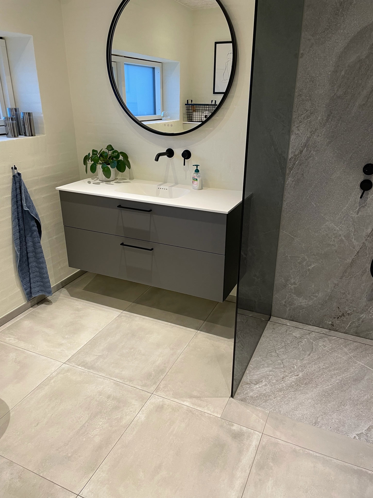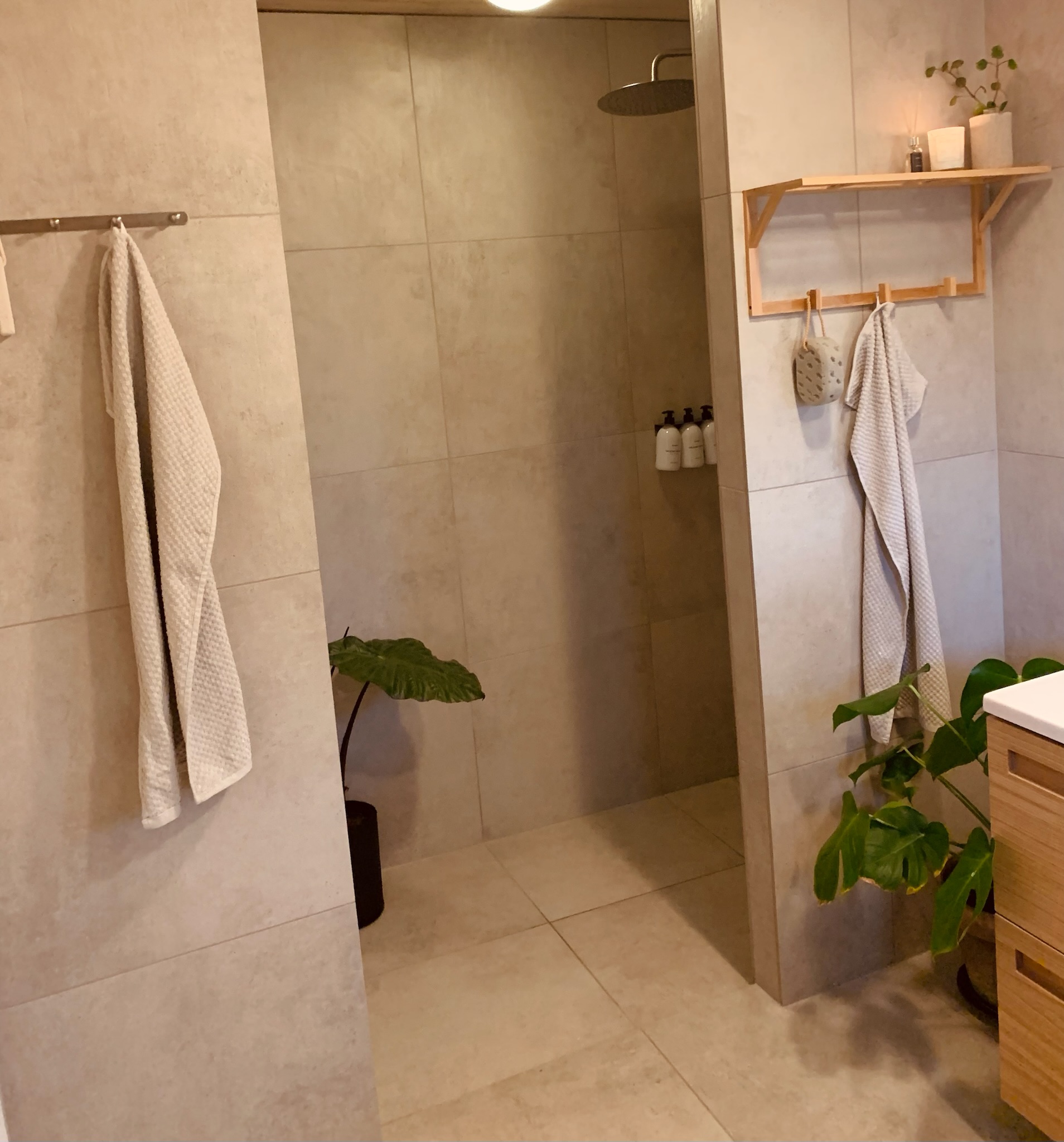 Store fliser giver et roligt og sammenhængende udtryk. Med færre fuger bliver overfladen lettere at holde ren i hverdagen. Samtidig kan store fliser få rummet til at virke mere åbent – også i mindre badeværelser.