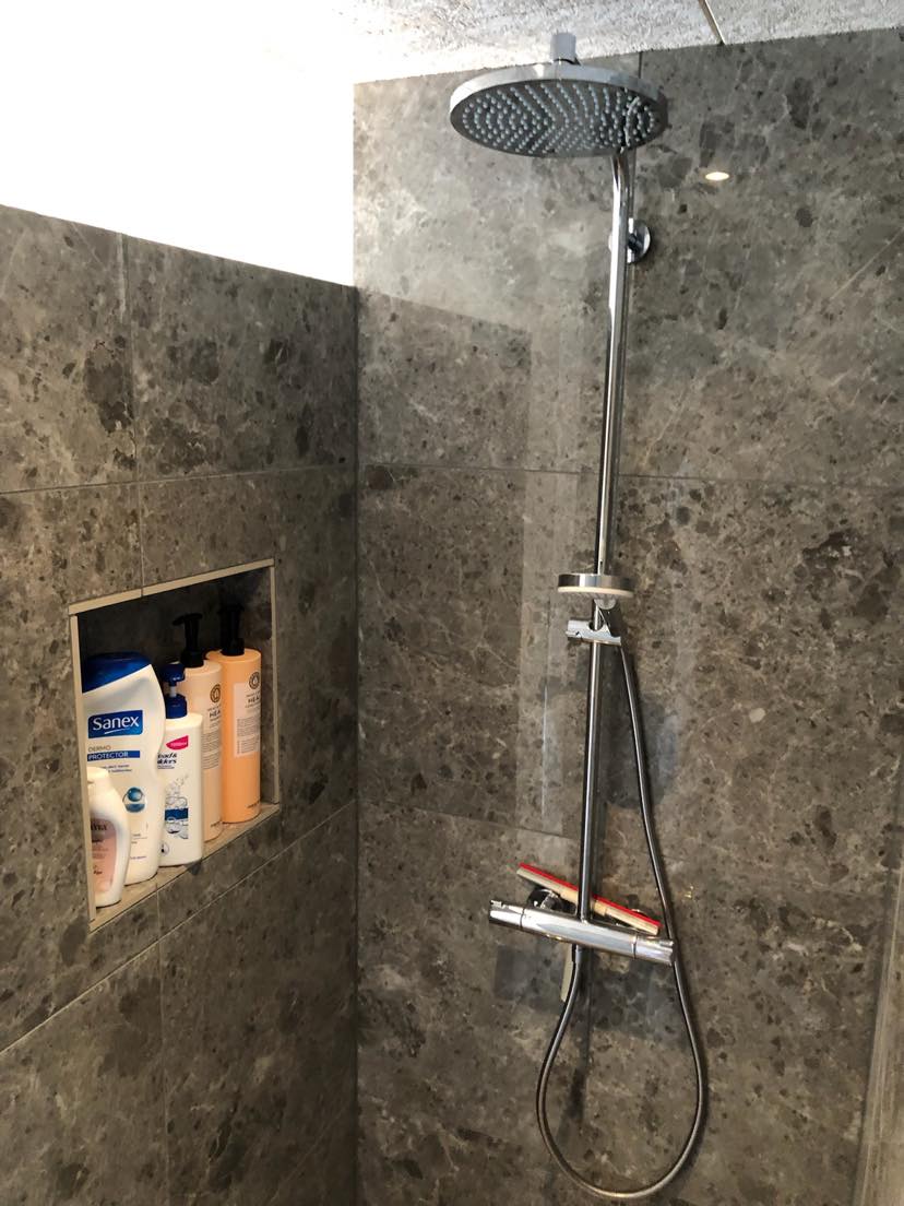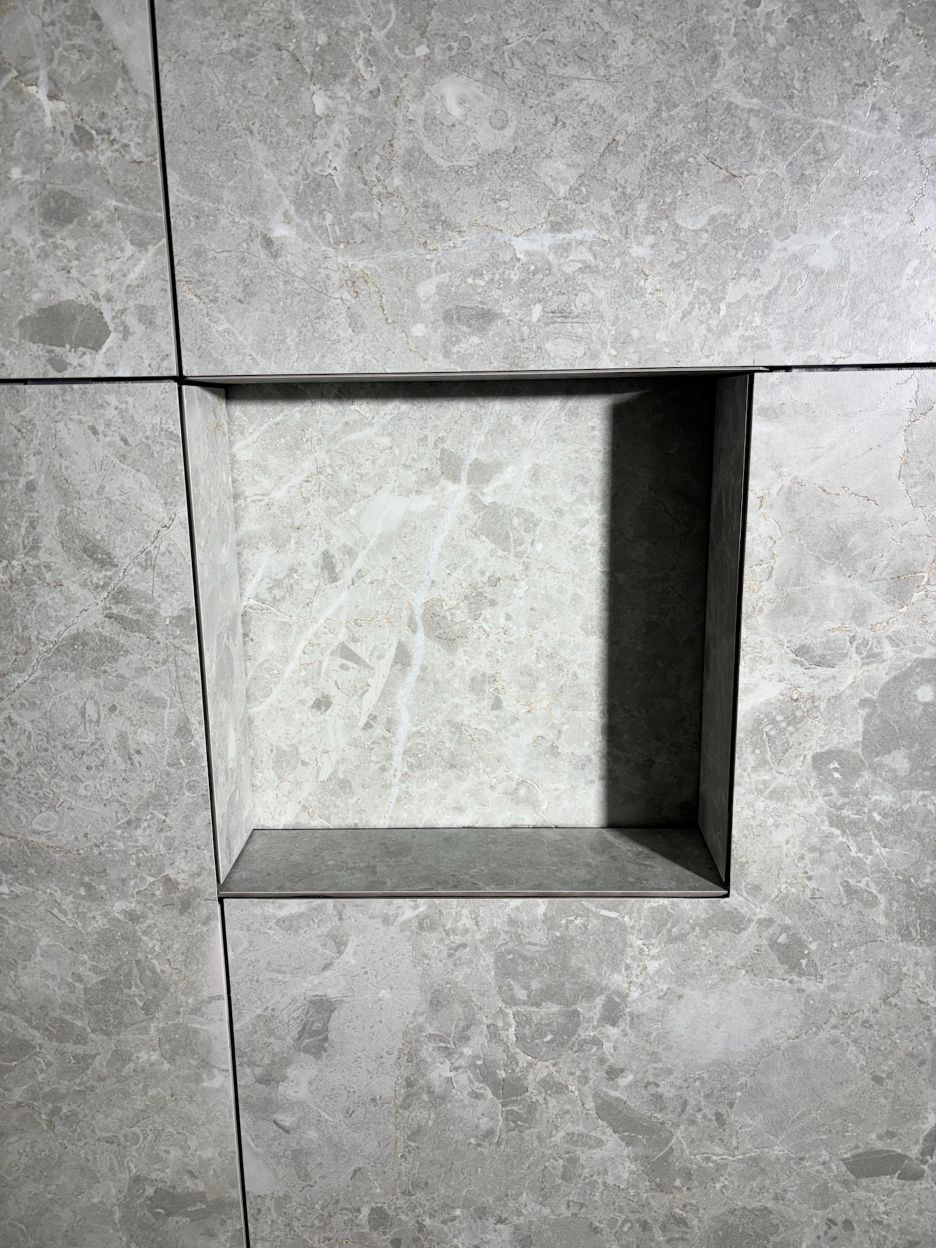 Murede sæbehylder får funktion og design til at mødes. De falder naturligt ind i rummet og beryder meget for både brug og helhedsindtryk.